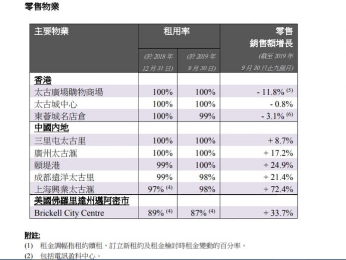 太古地產( 1972.HKEX )公布截至今年九月底頭三季度嘅營運數據,